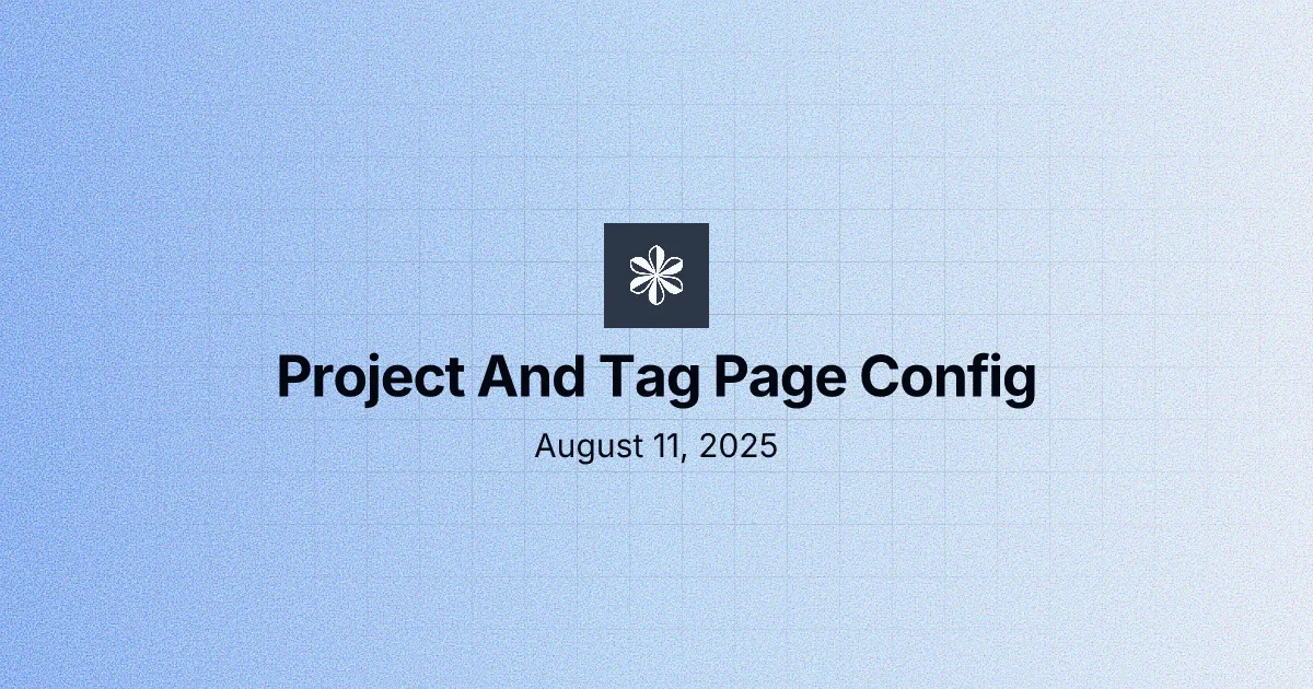 Configure Projects and Tags pages: page texts (PROJECTS_CONFIG, TAGS_CONFIG), project content frontmatter, file locations, and usage examples.